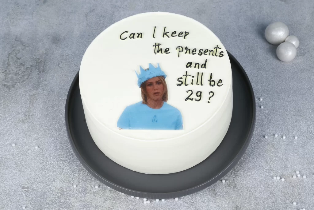 A humorous birthday cake designed for anyone turning 29 again. This custom celebration cake features a playful message, making it a popular choice for funny birthday cakes, milestone birthdays, and pop-culture-inspired celebrations.