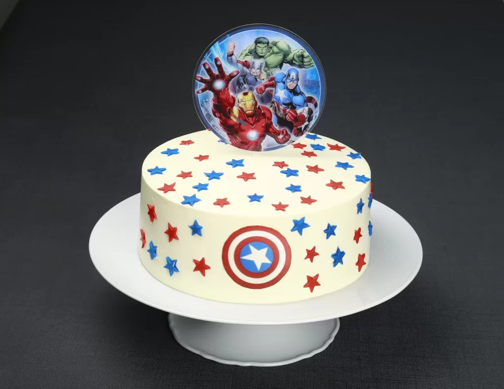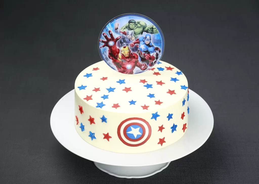 We guarantee a fresh, delicious cake made with premium ingredients. Additionally, we can include a fun topper of Captain America himself or the full Avengers logo.