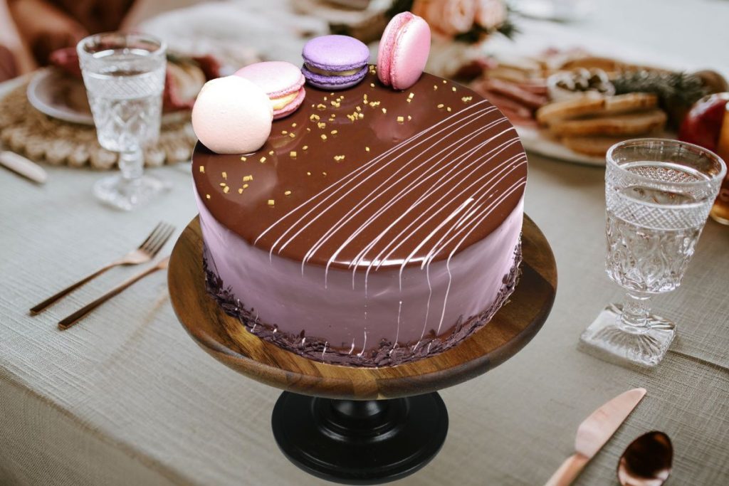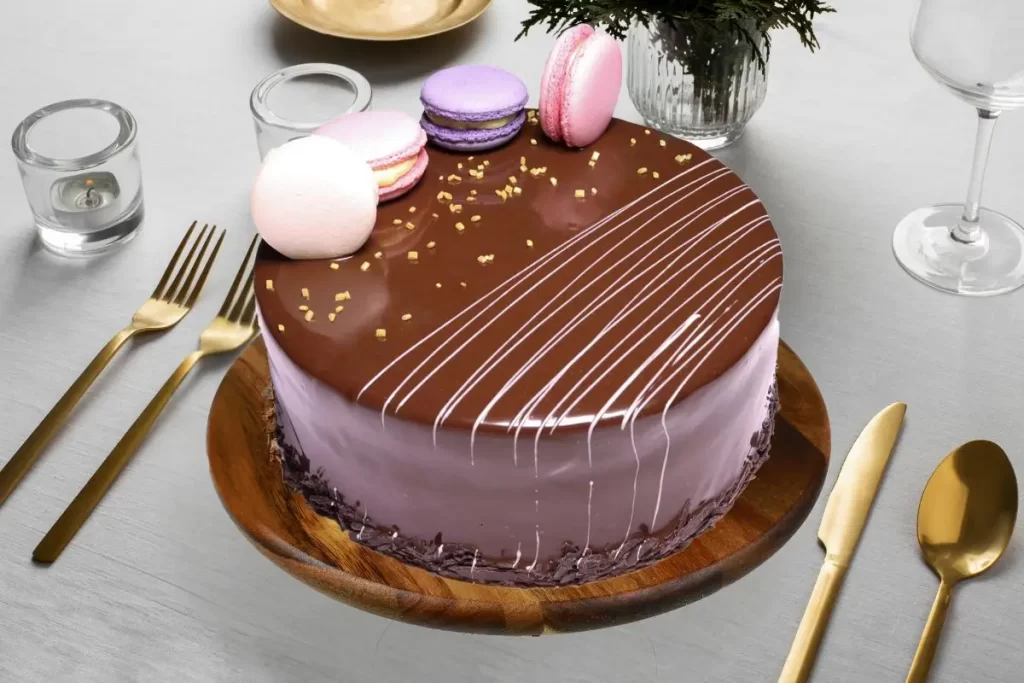 Our moist, rich Chocolate Cake is the perfect dessert for a chocolate lover’s birthday or any special occasion. Our Chocolate Cake has a fresh Cream Chocolate filling,Moreover decorated with Macaron disks which is crispy on outside and soft and chewy inside.