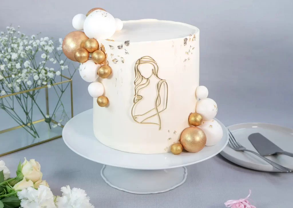 Adorn your celebration with Matilda Cake’s “Mother Pearl Cake.” This beautifully designed cake features creamy white frosting, accented with shimmering gold and white pearls, and a loving tribute to motherhood. A delightful and elegant treat for a memorable occasion