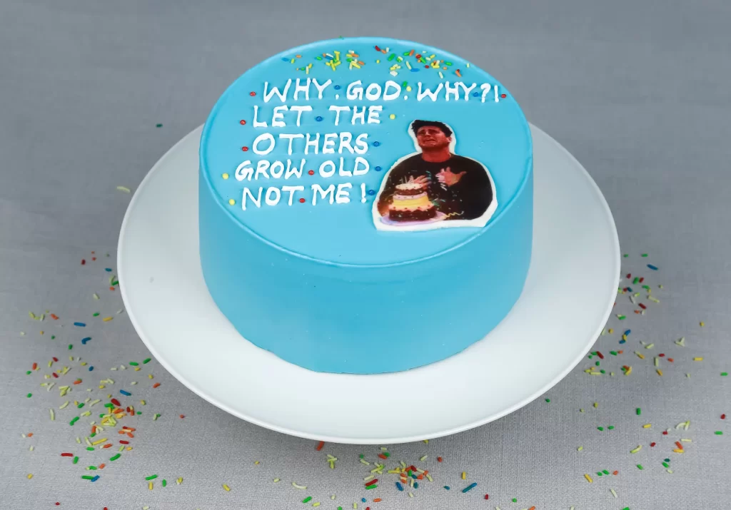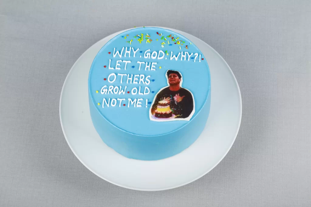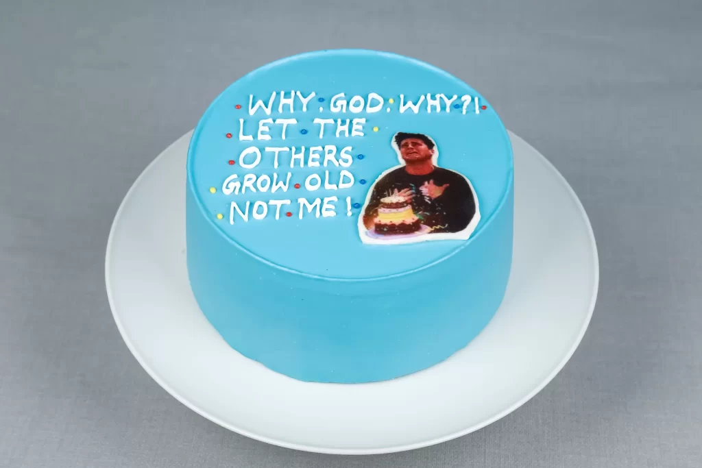 The Not Me! Birthday Cake Dubai by Matilda Cake is made for anyone who refuses to grow old. It is the perfect choice for those who believe aging is something that happens to everyone else. With bold blue frosting and a hilarious birthday scene on top, this cake brings joy and laughter. Moreover, it instantly becomes the centerpiece of the celebration and sets the mood for fun.