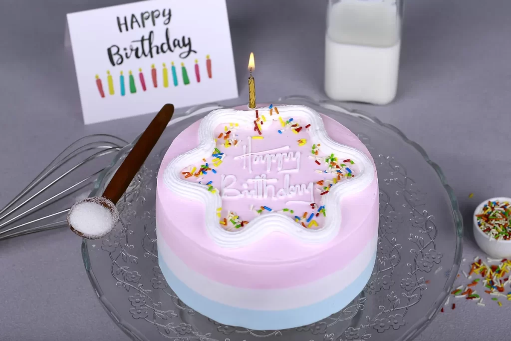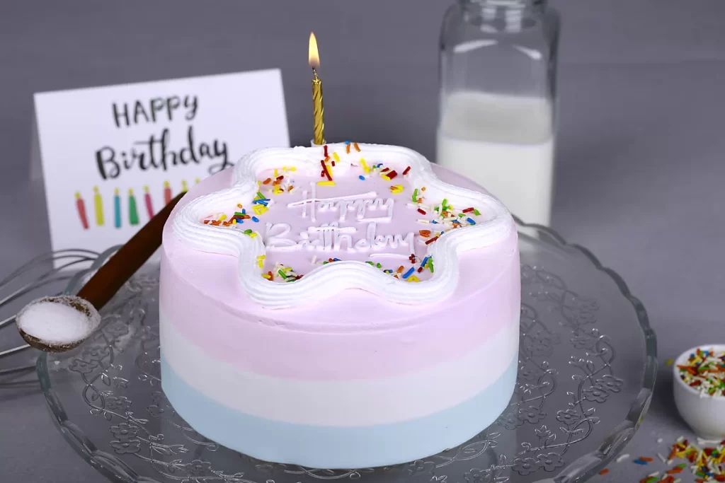 حلم باستيل على طبقك! طبقات فانيليا طرية مع حشوة وكريمة الجبن الناعمة، مزينة بألوان رقيقة — قابلة للتخصيص بالكامل لتناسب احتفالك.