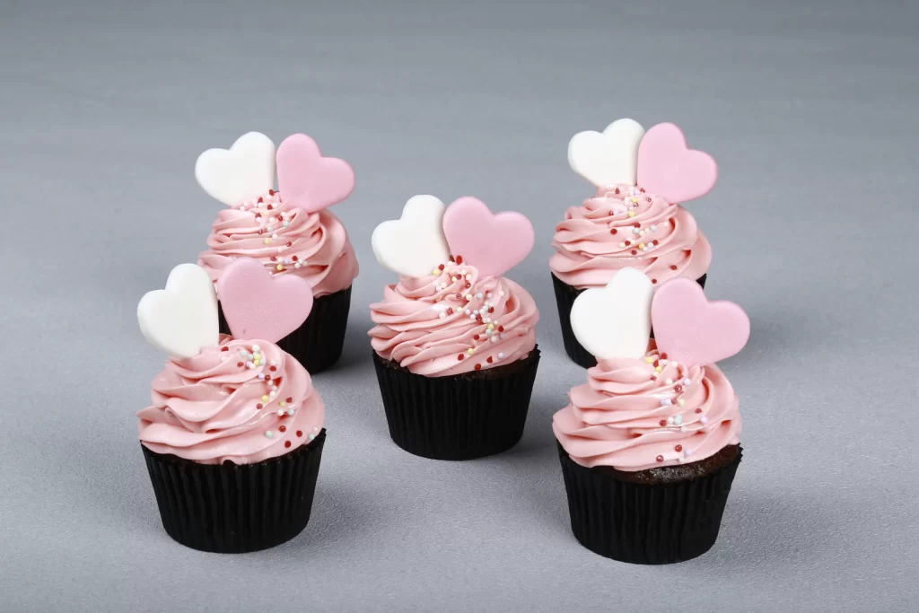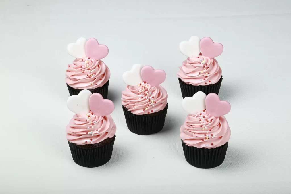 Sweet pink heart cupcakes with creamy frosting, perfect for sharing love and smiles. Cute, playful, and made to brighten any special moment