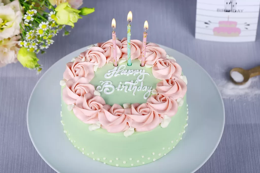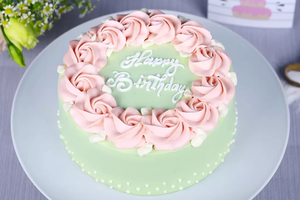 A bloom of sweetness! The Rose Flower Cake features moist sponge, luscious cream cheese filling, and frosting, topped with a crown of pastel rosettes for a charming treat.