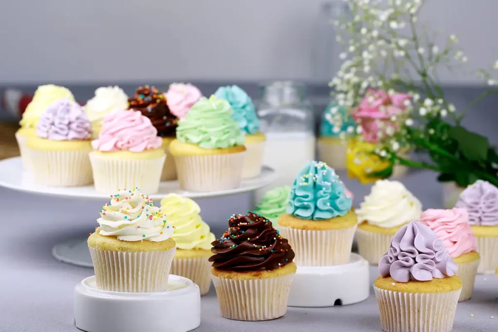الكلاسيكي يلتقي بالمرح! كب كيك فانيليا سبراكلز هو حلوى فانيليا خفيفة وهشة، مغطاة بكريمة الجبن الغنية ومرشوشة بالسبراكلز الملونة — تجربة لا بد من تجربتها.