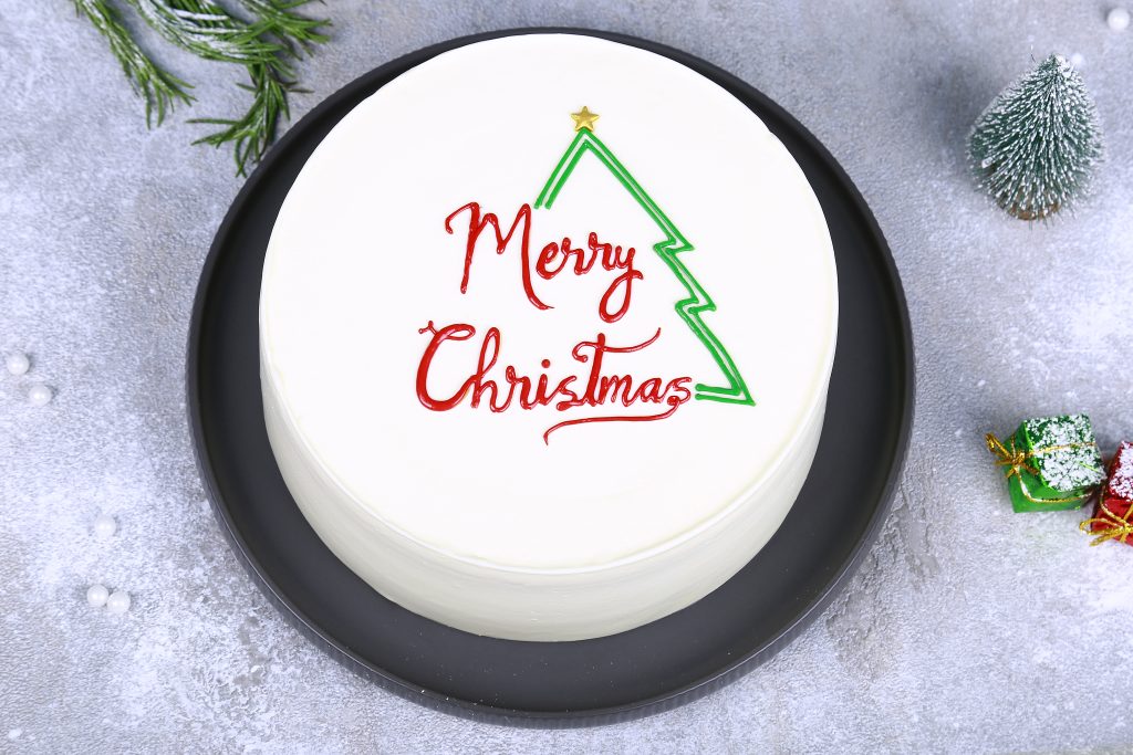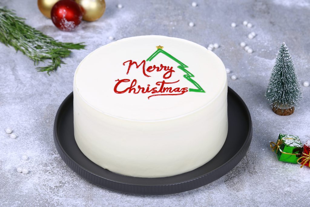 Topped with a festive “Merry Christmas” design and Christmas tree art, it’s the perfect centerpiece for holiday celebrations.